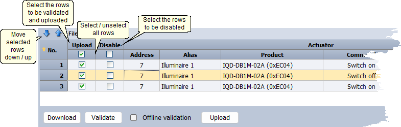 Validation is performed independently of the current network. Thus, the table may contain Actuator/Controller addresses not bonded in the current network.
