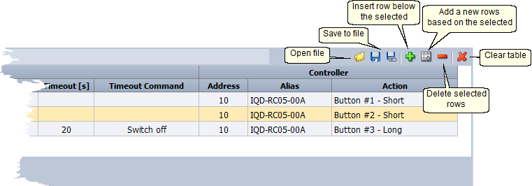 If the selected rules contain Controller addresses not bonded in the current network, these are indicated in yellow. This may not be a mistake. For example, during network installation, it is possible to configure Actuators controlled by Controllers that have not yet been bonded to the network.